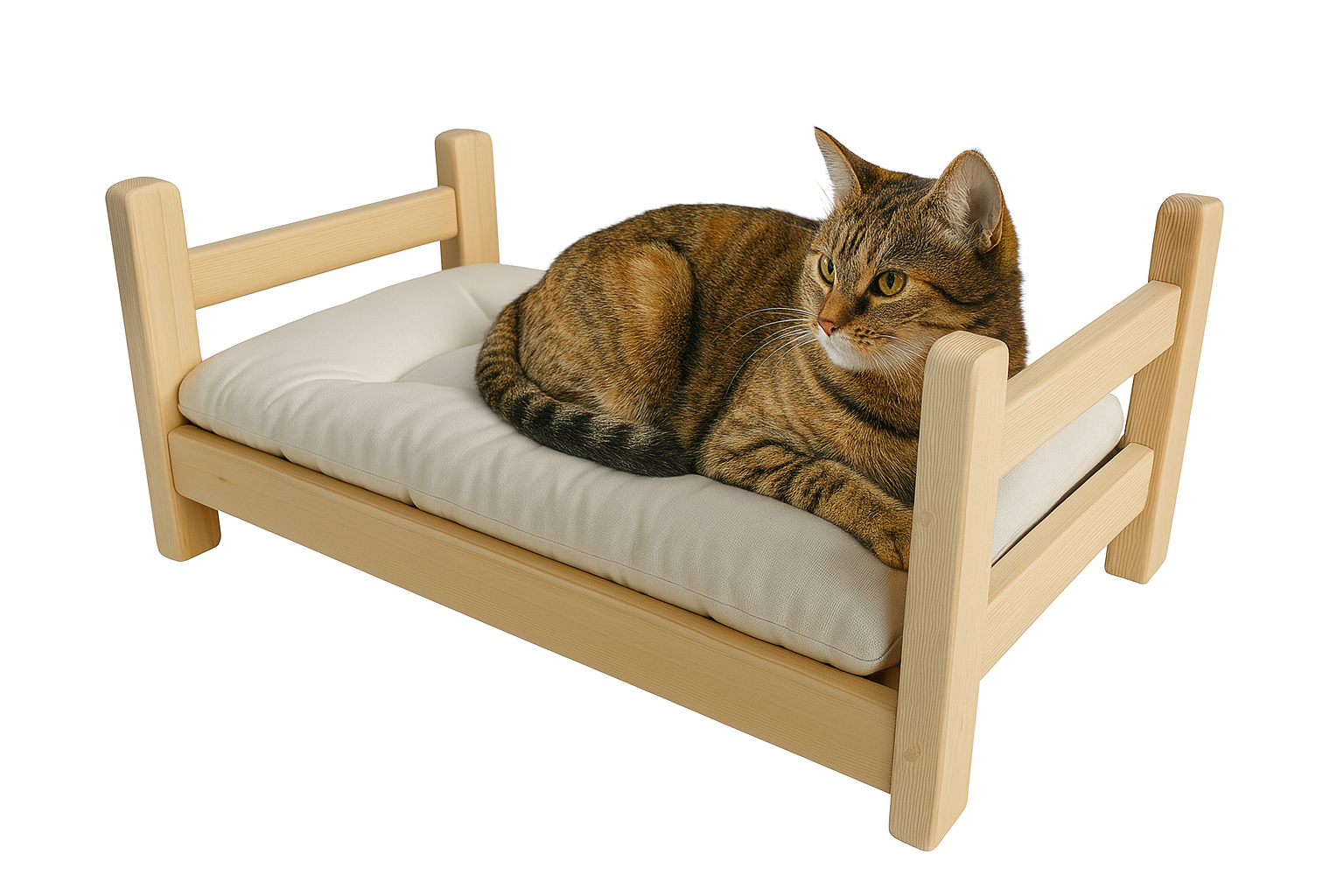 El Yapımı Çam Ağacı Kedi Karyolası ve Özel Üretim Yatağı– 30x52x23 Cm